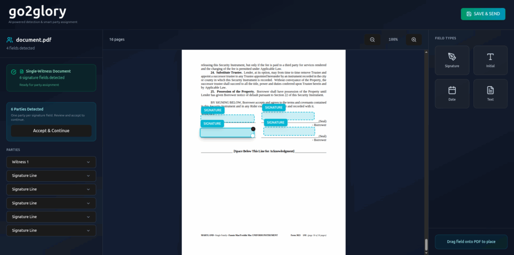 Revolutionary AI technology scans your document and identifies exactly where signatures are needed.
